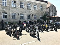 brummten die 25 markenmäßig munter gemischten Maschinen über die Grenze nach Österreich, Burgschänke Frauenstein: Mahlzeit! Der fällige Verdauungsspaziergang wurde aus praktischen Gründen auf die V-Twins verlegt, fängt ja auch mit V an… und schließlich musste der Tag ja an der Sissy-Bar würdig beendet werden – bei der Gelegenheit wurde auch vom Sonntag die eine oder andere Stunde weggefeiert. Entsprechend zäh war für den einen oder anderen der kurvige Weg zurück – aber es sind ja jetzt wieder 2 Jahre Erholungsfrist bis zur nächsten Cyclo-Party.