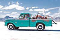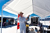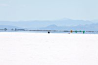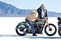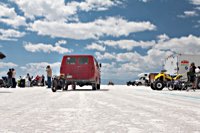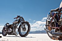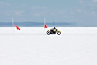 Strecke 2, so der ca. 17 Jahre alte Plan von Tom, sollten die Bonneville Salt Flats sein. Wie praktisch, dass die AMA (American Motorcyclist Associaton) rechtzeitig zu Johns 50tem eine der vielen Speedweeks ansetzte, die da so stattfinden auf der legendären Salzsee-Rennstrecke aller Rekordjäger.