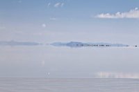 Alle packen zusammen und verlassen die Bonneville Salt Flats von denen man durch das Wasser nichts mehr sieht.