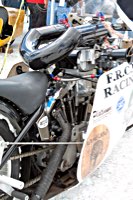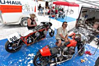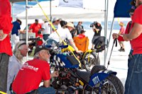 Dort waren Tom und John zwar mit relativ großem, aber nicht so verdichtendem Verbrennungsvolumen am Start, um genau zu sein mit einem Grill, auf dem sie der Wrecking Crew bei der Rennpremiere des W&W Big Boar Sportster köstlichste Pitverpflegung brutzelten und auch sonst alles für uns machten, von schrauben bis fotografieren.
