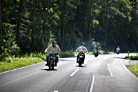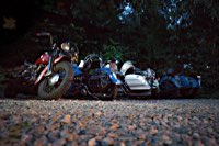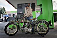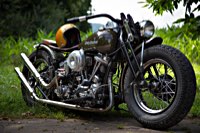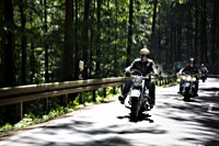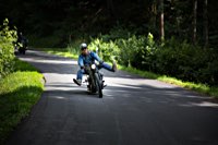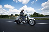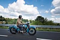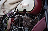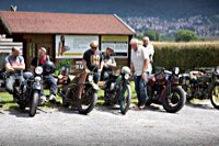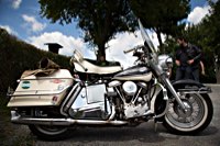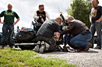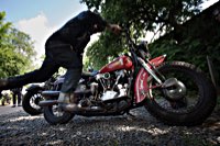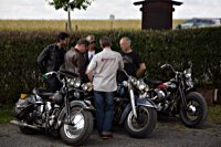 äh gebührend schwungvoll. Samstag Punkt 10 rollte der Harleyson’s MC auf eine speziell ausgefuchste Route, 200 Kilometer durch den Spessart: 24 V-Twins aus fünf Nationen ließen die laue Waldesluft sanft vibrieren und die Sonnenstrahlen flirrten durch die Buchenblätter auf die grinsenden Gesichter der Mopedisten. Alles perfekt. Selbst die Technik war in Sommerlaune. Nicht eine der Maschinen bockte. Und das bei einem Gesamtalter von 1663 Jahren. Chapeau, Harleysons! War doch das älteste Bike eine 750er Excelsior von 1927. Und selbst die weiteste Anfahrt von Harri aus Zürich konnte seine 1958er Panhead Duo Glide nicht bremsen.