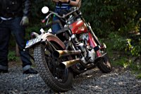 Historisch war auch der Anlass, sich zu treffen, da in Erlach tief im Spessart. Auf einem Ferienhof, der weit genug weg ist von allen Öhrchen, die zu empfindlich sind für Zweiräder, deren Kraft aus Explosionen in respektablen Hubräumen kommt. Auf einer Zelt- und Partyfläche, so abgelegen, dass Nerven nichts zu befürchten haben, die zum Zerreißen angespannt sind schon allein bei der Vorstellung von lauter, schneller Musik und Menschen, die auch nach Einbruch der Dunkelheit noch Spaß haben.