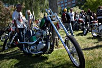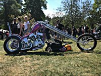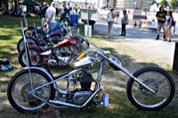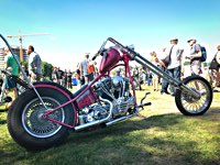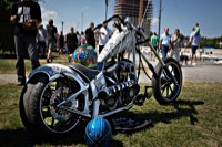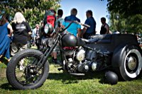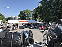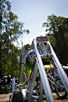Jetzt aber Tempo. Die Hubräume leisten ganze Arbeit, wir müssen nach Norrtälje, zur Custombikeshow. Obwohl wir in Enköping beim „Hang Em Hi“ hängen geblieben sind, wie der Name fordert, rollen wir Samstag früh rechtzeitig in den Hafen von Norrtälje ein. Die Show läuft von 10.00 bis 17.00. Nur einen Tag. Und die Preisverleihung beginnt um 15 h. Wenn man die sehen will, hat man also grade 5 Stunden sich 240 Chopper, Bobber, Trikes, finnische CBR 1000 F Bagger, Streitwagen und deren Erbauer und Fahrer anzuschauen. Also los: