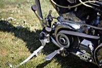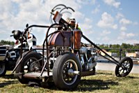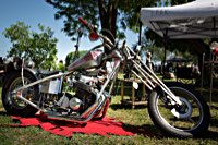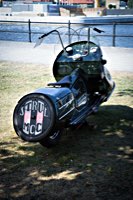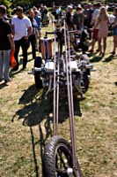 Bestes Beispiel für stilvollen, angemessenen Aufwand liefert der oben kurz erwähnte römisch inspirierte Streitwagen. Ben Hur hätte seine Freude gehabt an der Menge von Pferden: der Erbauer hat gleich mal ZWEI Panhead Motoren eingebaut und kam sogar auf direktem Wege aus… genau: Rom.
