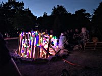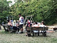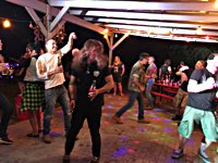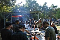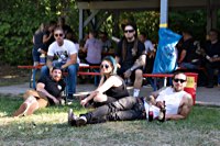 Und zu jeder Kiste gibts mindestens eine oder einen, dieder das Motto der Pre-Show Party ernst nimmt und tatkräftig umsetzt: HELTER SKELTER! Drunter und Drüber, alles geht, nichts muss oder umgekehrt. Hufweisen-Werfen? Wir haben doch Bates Baja Reifen. Waldbrandgefahr? Wir sperren das Feuer in einen Steingrill und steaken uns eins. Bier einfach nur so trinken? Kann man machen - oder es sich per Auspuff ins Körperinnere bongen lassen.