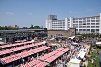 Jedenfalls ergab sich mit einem flächendeckenden Mix aus Stationen für die Flüssigkeits- und Kalorienaufnahme, Skatepark, Ruhezonen, Shoppinggelegenheiten und einer kleinen aber um so feineren Auswahl von Custombikes in den „Klokgebouw Cultuurhallen“ eine attraktive Ausflugsgelegenheit am Sonntag.