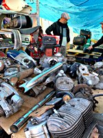 sieht manche Teile und Motorräder zum ersten Mal, trifft Kollegen der Harley-Schrauberzunft, vor und hinter den Tischen - und eh man sich‘s versieht, hat man nicht nur ein paar Bierchen mehr drin sondern auch einen Lenker, einen Sportster-Tank und einen Bosch-Regler gekauft. Vielleicht ganz gut, dass man zeitig los muss, weil noch ein längerer Heimweg ansteht: es gab da noch so viele interessante Sachen...