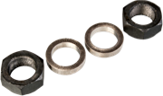 Komplette Kits für Vorder- und Hinterachse an Harley-Modellen mit Trommelbremsen. Reproduktionen der originalen Muttern, Distanzbuchsen und Sicherungsbleche.