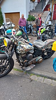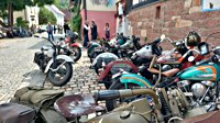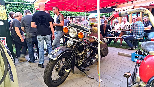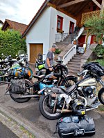 Wenn SpeedMcLean zum B-Bombers-Flight #3 bittet, lässt sich sein weit gestreuter Freundeskreis (D, A, CH, F, S, NL...) nicht lange bitten, denn dann ist sicher: da gibt’s beinharte Bier-Benzin-Besprechungen, gut gegartes Gourmet-Grillgut, motorradhistorische Meilensteine, massig Memorabilien und nicht zuletzte museumsreifes Mopedmaterial (haufenweise Harleys) beim Meilenmachen.