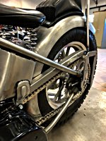 Mit Mattias „Le Beef“ Andersson hatten wir einen Mann an der Werkbank, der als Stahlflüsterer und Ideen-Wahrmacher mit hoher Drehzahl aus unserer Idee zwei sehr schlanke, coole Shovel-Chopper baute.