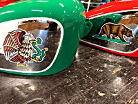 Aber nach Monaten des Schraubens, Frickelns, Friemelns, Fluchens, Kopfschüttelns und Grinsens, mit den Teilen frisch lackiert von Bob’s Custom Garage, Tidaholm, Schweden, und den Tanks handbemalt mit California-Bär, Mexiko-Adler und W&W-Logo von Annika Ljungberg of Duckstripe, Varberg, Schweden standen sie da. Und es war klar: