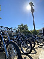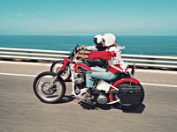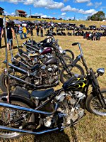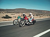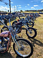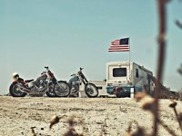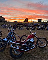 Jetzt mussten die beiden Shovels nur noch die Sprache der Straße lernen: erst ging’s ein paar hundert Kilometer lang durch einheimische Panorama-Kurven, über Ackerfurchen und Autobahnstrecken - und schliesslich über den großen Teich, direkt zu Born Free California. Danach bollerten die Baja Twins ihre mexicalifornischen Farben durch die Baja California, bevor wir sie noch bei Born Free Texas und der Paradise Road Show parkten.