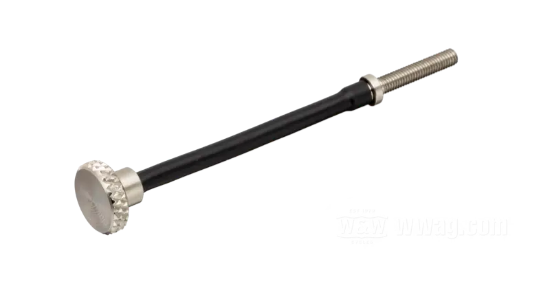 Die Leerlaufeinstellung von Keihin Vergasern kann schon etwas nerven, da die Einstellschraube ziemlich schwer zugänglich ist, vor allem mit Serien-Luftfiltern und großen Tanks. Der Bates Einsteller löst dieses Problem im Handumdrehen und endgültig. Er hat eine flexible Welle mit großem, gerändeltem Knopf und ermöglicht blitzschnelles Justieren ohne Schraubendreher.