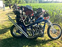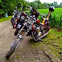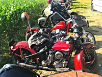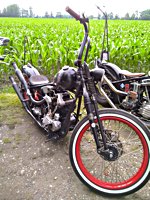 zur Party ist auch die Zahl der Teilnehmer: rund 60 Chopper-Fans mit entsprechenden Mobilen schrauben langsam die Partydrehzahl an diesem herrlichen Sonnen-Wochenende nach oben. Die Qualität der Maschinen und die Detaildiskussionen, die sich daraus ergeben, sind eine Klasse für sich. Genau wie die Live-Band und die mit einigen Eimern Sand ;-) nachgebesserte Beach-Zone. Ausser der Bike Show gab es auch noch einen Geräusch Messungs Contest bei dem dem - großes Hallo – das leiseste Bike den ersten Platz machte. Aber wo, wenn nicht hier.