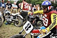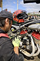 Staub statt Puderzucker, Auspuffbrüllen statt Ständchen – es ist der etwas andere Festtag für den japanischen Customizer Toshiyuki "Cheetah“ Osawa und seine preisgekrönte Maschine, eine kunstvoll im Flattracker-Style umgebaute 1946er WL Harley-Davidson namens „Meteor“.