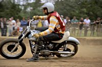 Bike-Show-Touristen und fleißige Instagram-Surfer könnten die Maschine schon mal gesichtet haben, schliesslich gewann sie unter anderem den Wheels&Waves x Hot Rod Custom Preis 2023 und war – geradezu logisch - auch bei Born Free ausgestellt. Hier aber, an der französisch-spanischen Atlantikküste, muss die „Meteor“ zeigen, dass sie mehr ist als ein Showtalent. Aber da kennt „Cheetah“ keine Gnade für sein Schmuckstück, lässt es beim Punk’s Peak erstmal warmlaufen und nominiert es dann für das Flattrack Race „El Rollo“ auf dem 250 m Oval des „Hippodrome Lasarte Oria“ in San Sebastian, knappe 50 km südlich von Biarritz.