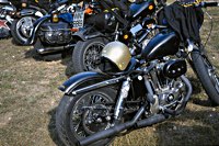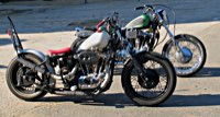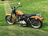 das K-Modell bestaunen, ein 750 Kubik Seitenventiler, quasi ein Flathead-Enkel. Damit bot Harley, angeregt vom 1948er 125 Kubik Einzylinder, einiges Neues: Motor und Getriebe in einem gemeinsamen Gehäuse, einen hochgeschwindigkeitstauglichen Rahmen mit hydraulisch gefederter Schwinge und Fußschaltung. Kurz darauf erschien das KH Modell mit immerhin schon 900 Kubik, was dann der Grundstein war für..... Bratz-Bratz: die XL Modelle - mit gußeisernen Köpfen, hängenden Ventilen (OHV) und einer sportlichen Kompression von 9.5:1