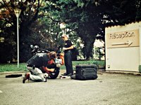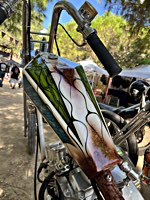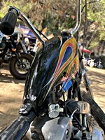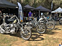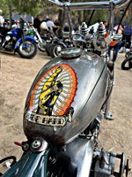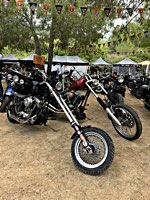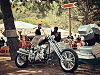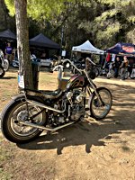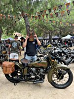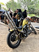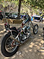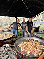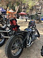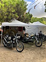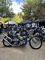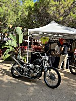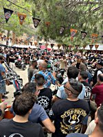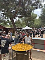 sorgen für entspannte Ferienstimmung in bester Gesellschaft, mit tollen Maschinen und hochdezibelöser Beschallung. Höhepunkt aber, wie jedesmal, wenn sich im Schatten der Bäume zwischen Felswänden die Pre-84-Fangemeinde trifft, sind die Pans. Also Pfannen - nicht die zweirädrigen, sondern die richtigen, die flachen, die ganz großen, die, in denen die Paellas gemacht werden. Feinster Treibstoff für die schlangestehende Crowd, um die Party durchzuhalten, die Biere, die Bands, die Benzingespräche – und die Preisverleihungen. Unter anderem an unsere 28er J für die weiteste Anreise. Gutes Omen für den Cannonball? Wir werden es sehen. Danke für den Preis und für ein gut geöltes, hochverdichtetes und großhubiges Wochenende. Gracias Gipsy Crew und Shovelhead Spain!
