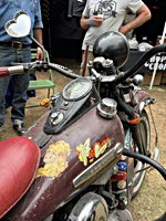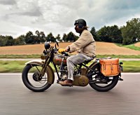 Nach einer kleinen anfänglichen Ehrenrunde dank einer lockeren Einlass-Ventilführung, wird es ernst: Angepasst an die Realität des Cannonball Race, ist die Strecke in 4 Etappen aufgeteilt, zwischen 370 und 450 km pro Tag, mit Fahrtzeiten von mindestens 8 Stunden - auf dem Bike! Ist auch kein Wunder, dass das dauert: es geht hauptsächlich über Landstraßen mit viel Verkehr – wenn’s gut läuft sind 80 km/h möglich. Viele Dörfer und Städtchen mit 30er Zonen, Kreisel, Speed-Bumps. Ausdauer ist gefragt. Auch vom Fahrgerät. Aber die fast 100 Jahre alte Maschine läuft wie am Schnürchen und bollert mit Pilot Chris mittenrein in eins der besten Harley-Treffen Europas.