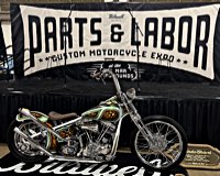 Der Name der Show „Parts & Labor Custom Motorcycle Expo“ steht nicht