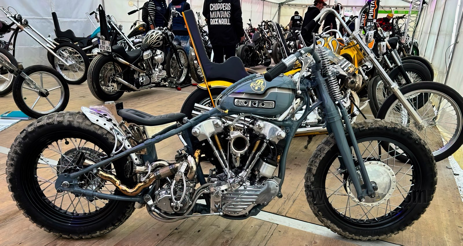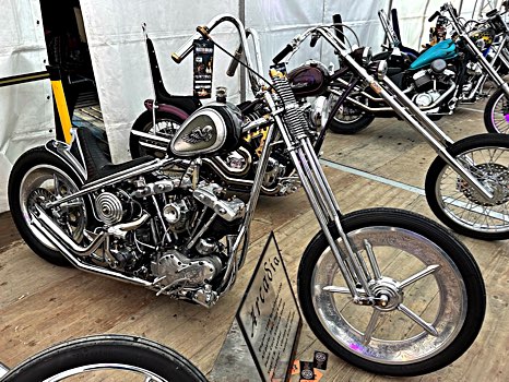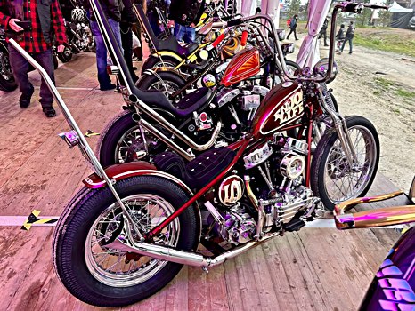 Einmaliges gab es auch in den beiden berggroßen Zelten zu sehen, sortiert nach „Clubstyle Maschinen“ und „Chopper“: so konnte jede und jeder ein Traummotorrad nach seinem Geschmack entdecken – und rätseln, wer wohl gewinnt, beim „Open Contest“ und beim „Master Builder“-Profi-Wettbewerb. Doch bevor das Urteil verkündet wurde, mussten alle Maschinen den Test bestehen, der die Trailer-Queen vom echten Straßenkönig unterscheidet: nur wer den Ausritt zum Altiport (ein waghalsiger Flugplatz am Hang, bestens bekannt aus der Tour der Pedaltreter) technisch makellos überstand, konnte gewinnen. Und Gewinner gab es einige - ganz besonders erfreulich war bei der langen Preiszeremonie, dass der W&W Cycles Award an Frieda ging, eine junge Bikerin, die mit ihrem 1964er Panhead Chopper alle begeisterte. Wir gratulieren ihr und allen anderen und freuen uns auf das nächsten Gipfeltreffen der Marke Punta Bagna.