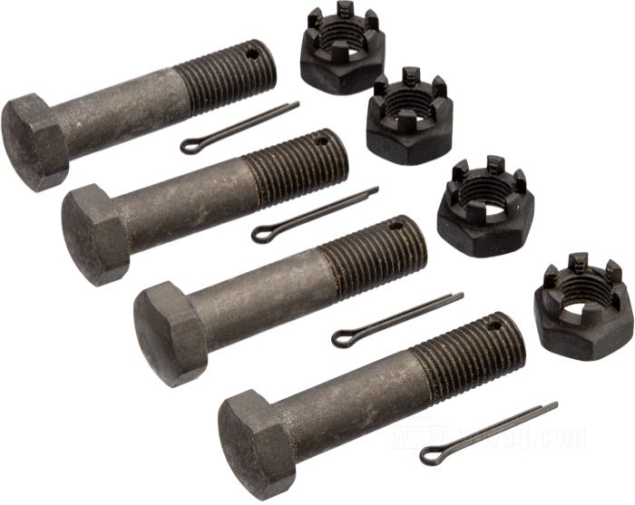 Parkerisierte Kleinteile mit denen der Motor in den Rahmen geschraubt wird. Der Schraubenkit besteht aus vier Schrauben, Muttern und Splinten.