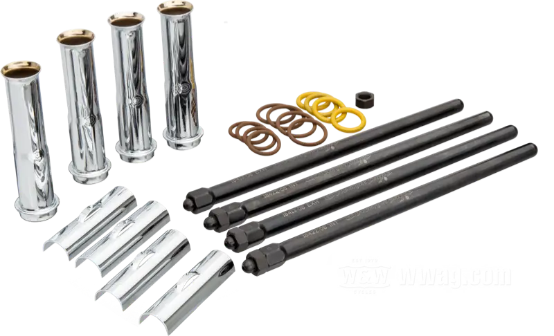 Twin Cam 88 Modelle, in die schärfere Nockenwellen eingebaut werden sollen, benötigen diesen Stoßstangen-Kit. Gefertigt aus Chrom-Moly-Stahl mit extralangen Einstellschrauben, sodass die Rockerbox beim Ein- oder Ausbau nicht mehr geöffnet werden muss. Im Lieferumfang enthalten sind auch die erforderlichen Teleskoprohre, die schnelle Einstellarbeiten ermöglichen.