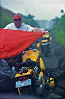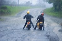 Der Proviant ist komplett, die Klamotten duften frühlingsfrisch und der Süden ruft. Na, dann kann’s ja losgehen.Und es geht dann auch los Richtung Chepo - leider nicht sehr weit, denn nach ca. 100 km nimmt der Asphalt auf der Straße ein mehr oder weniger abruptes Ende. Einen Anfang dagegen machte der Regen. Und schon bei den ersten Tropfen zeigt sich, welche der beiden Maschinen noch keine 1000 Testmeilen in Spanien zurückgelegt hatte. Statt ölverschmiert den Regen abblitzen zu lassen, entschließt sich jene, hier und da mal die eine oder andere Zündung auszulassen.