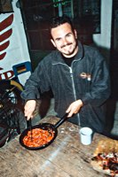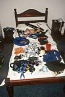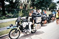 Über dem Atlantik bereiten sich die vier seelisch auf einen längeren motorradfreien Aufenthalt in Buenos Aires vor. Immerhin flutschen sie geschmeidig durch den argentinischen Zoll und erfahren gleich mit voller Wucht das argentinische Dampfklima (37 Grad Celsius, Lutfeuchtigkeit 99%) - und die Gastfreundschaft, die sie auf den nächsten 3000 Meilen immer wieder begeistern wird: Alberto, mit dem es bisher nur Telefonkontakt gab und sein Kumpel Flavio leiten das vielköpfige Empfangskommittee, bruzzeln ein feudales Asado, sprich Steak-und-Wurst-Orgie und quartieren schliesslich auch noch die Familie aus, damit die Patagonischen Reiter ihre müden Häupter betten können.