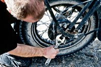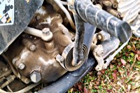 Dort angekommen bleibt Zeit genug für Paul, das Vibrieren seiner Knuckle zu beseitigen. Ein Blick in den Kettenkasten zeigt: es war keine Sekunde zu früh: ein Teil der Rollen war schon geplatzt und die Reste lagen am Boden des Gehäuses. Was nun? Ganz einfach: die mitgebrachte Austauschkette einbauen.