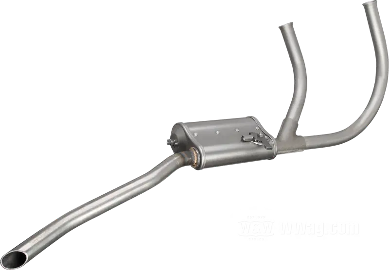 Reproduktionen der serienmäßigen Auspuffanlagen. Die Anlagen bestehen aus den beiden Krümmern, dem Auspufftopf mit dem baujahrgerechten Cutout und dem Endrohr. Die Anlagen kommen in Einzelteilen und müssen montiert werden. Die Anleitung dazu gibt's hier online.