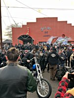 sorgt für volle Tanks, Durstreduktion, Temperaturerhöhung, Kalorienzufuhr oder neue Mitglieder in der Reisegruppe. Nach Etappen in Corona de Tucson, Huachuca City, Tombstone parken die Baja Twins schliesslich vor dem Hotel Roman in Bisbee. Aber nur kurz, die Pre-Party im Grenzort Naco steht noch auf dem Programm. Nicht nur bei uns: als wir ankommen ist die Straße vor dem „Gay 90‘s“ schon rappelvoll. Großes Hallo, Freunde, Mariachi, Bier, Danger Dan’s Kickstart Wettbewerb. Durch die Kälte zurück zum Hotel. Absacker in der gut besuchten St. Elmos Bar, ein paar Häuser die Straße hoch…