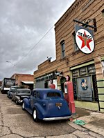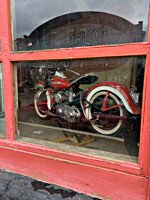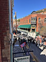 das Hotel liegt im Zentrum von „The Prowl“. Morgens ein erster Blick aus dem Fenster: … Schnee, echt jetzt? Auf den Bergen, auf den Autodächern - egal, wir schnappen die Baja Twins und bollern in den Stadtteil Lowell: Frühstück. Im Bisbee Breakfast Club. 1 h Warten. Sehenswerte Ecke, eine Straße wie aus einem Film, vollgeparkt mit Oldtimern, dazu Harley Händler, Indian Shop, Chevy Werkstatt – gehört irgendwie (fast) alles Jay Allen, aber dazu später*, wir haben ja noch ein Choppertreffen vor uns.