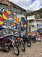 Mit den Baja Twins in unserer US-Garage war die Idee nicht allzuweit entfernt, dass wir diesen beiden Spezial-Shovels mal das Städtchen Bisbee, AZ zeigen. Der 5.000 Einwohner-Ort hat es geschafft, ganze Strassenzüge aus der Zeit als „Königin der Kupfer Camps“ zu erhalten – man darf also eine dekorative Mischung aus Western-Atmosphäre und Chopper Lifestyle erwarten.