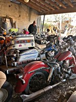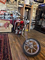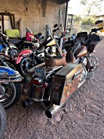 eingeladen bei *Jay Allen , dem Mann der 55 Geschwindigkeitsrekorde. Ihm gehörten die Broken Spokes Saloons in Daytona and Sturgis. Sein Privatmuseum ist ein unglaublicher Ausflug in die Chopperwelt, vollgetankt mit Andenken, Museumsstücken – und Hinterhofschätzen. Ein Traum für Scheunenfundjäger. Aber wir müssen ja noch zurück nach Tuscon. Diesmal wird es die kleinere Straße, durch die Wüste, über Sierra Vista. Die Sonne heizt jetzt ordentlich, da können wir sogar die Helme weglassen. Beim Tanken treffen wir die Reisegruppe vom Freitag und hängen uns dran. Bye bye Bisbee, wir kommen wieder. Versprochen.