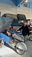 und bei Jim ist genug Platz vorm Haus, dass sich die Reisegruppe sammeln kann: 10 Leute mit ihren Bikes, ab nach Südosten.