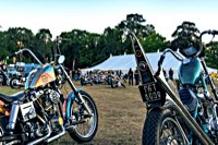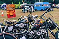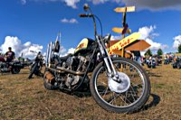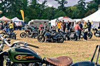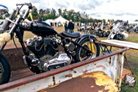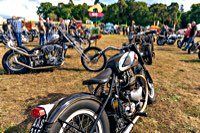 Wer noch nie bei The Trip Out war: es ist wie der Besuch auf einer Insel der Glückseligkeit für prähistorische Zweiräder: eine grüne, ausladende, parkprächtige, magische Zeitkapsel, voller Knuckleheads, Panheads, Shovelheads in verschiedensten Stadien der Verschraubung, locker gemischt mit britischen Klassikern.