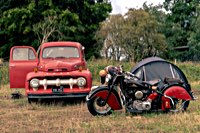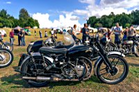 für die meisten Besucher als überschaubarer Zweiradausflug abspielen, jedenfalls im Großraum London – Norwich. Aber schauen wir doch mal dem Shovel-Reiter zu, der in der Abgeschiedenheit eines deutschen Mittelgebirges um 5 aufsteht, um 6 die Shovel startet und damit 6 Stunden Richtung Calais bollert. Dicker Tank, alles fein ausgerechnet, müsste mit einem Zwischenstopp lässig bis zur Fähre reichen. Tja, wäre da nicht der prasselnde Regen, der pestige Gegenwind – das kostet wertvollen Zündstoff - und ein paar Zylinderkopf-Schrauben, die nachgezogen werden müssen – da kann man schon mal ne Fähre verpassen. Auch gut, dann los zur nächsten Tanke, mit den letzten Tropfen Sprit. Ui, zuviel Strecke, zu wenig Tropfen. Die Shovel shovelt langsam aus, direkt vor einem afrikanischen Restaurant. Mit freundlichen Menschen, die Benzin besorgen und köstlichen Fisch kochen. Da kann gerne auch die nächste Fähre alleine los.