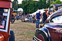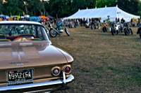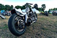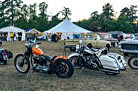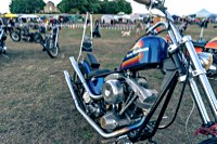 Alles brummt friedlich und geschäftig vor sich hin, glänzend organisiert von Anna und Andy: eine große freundliche Familie, bei einem Wochenende voller wilder Musik (wir empfehlen: Oh! Gunquit! und dazu die fantabulösen Meyer Dancers), Swapmeet, bestes Bier, reichlich Mampfbuden, diverse Preisverleihungen und dazu das stete Brummeln und Potatern von gut und nicht ganz so gut eingestellten Harleys. Ein Traum.