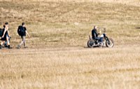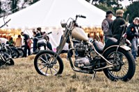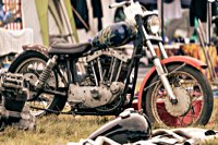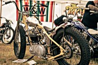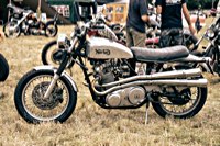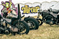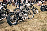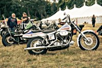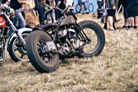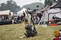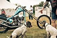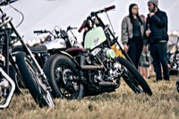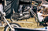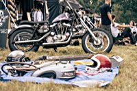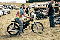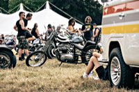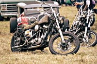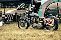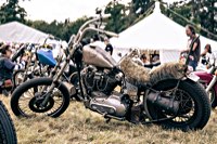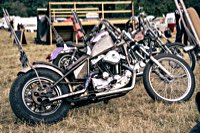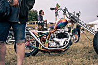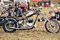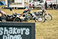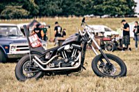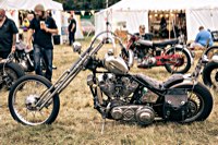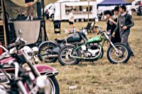 vintage Harleys parked in the show field, crazy paint jobs, an almost authentic looking not-quite-a-’71 boat tail Superglide, Indians, BSAs, Triumphs, Sportsters in all phases of dereliction and wrenchification rumbling, farting and humming hither and thither, long beards, short beards, a swap meet (a "rolling" Sportster chassis with engine could have been yours for £1.400), dogs, kids, clothes, funny hats, the best cappuccino for miles around (come to think of it: the duke, who lives next door in Euston Hall might have an even better one from his kitchen), a half pipe, hot rods, vans, a chill out tent with forgotten movies playing on a large screen …