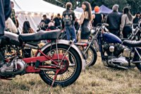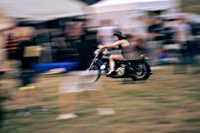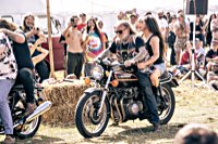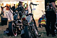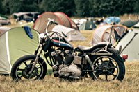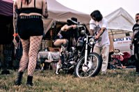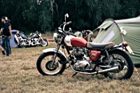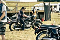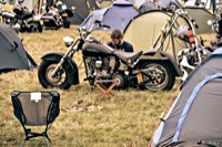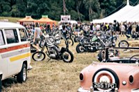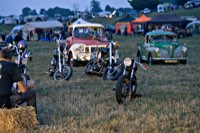 your sleeping bag, breathe in the sweet smell of the grassy field around you, and sleep serenely, until at 3 and a half in the morning someone needs to start his straight piped Panhead. This is when you realise that the beer you had all evening wants out again. Rats. The whole place is, as you now notice, snoring away madly, and the loo is a quarter mile into the darkness ...