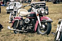 The next day there were fun and games, riding the impossible plank, the sausage snapping contest, the pie eating contest and what not, with Andy having a great time badgering the competitors. Awards were given away for the bikes in the bike show, there were more burgers to be eaten, a loose handlebar master cylinder wanted torquing down and before we knew it, the Old Shovel was shovelling on again, homeward bound, almost dodging the last downpour in Dover.