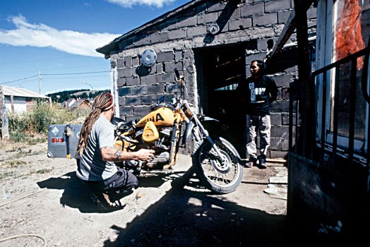 Still without the bikes, we decided to do a little more research on Argentinian life by visiting the local MC Epidemia which has a comfortable club house with vast grounds and a nice pool. A couple of hunks of charred meat and some cold beers later and we almost forget why we’re here. But the next morning the bikes have finally arrived in Buenos Aires. After uncrating them the equipment goes on the bikes. Tomorrow the End of the World Tour rolls!