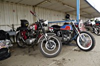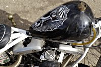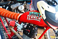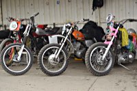 The Harley fraternity was somewhat less in for the fun and more for serious business. Neat Ironhead Sportsters, flatheads, Evo Sportsters in metalflake dress made up the Harley class. We had opted for an Aloha inspired Hawaiian dress for our BeefyBody clad Superglide. Last year’s racer, our rigid Panhead was used this time for displaying the one-off trophy for the W&W Harley Class.