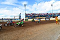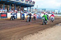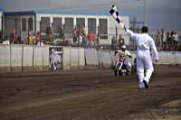 So they promised us a couple of hours of dust, dirt and a bunch of lunatics going in counterclockwise circles. Who would not drop everything, load up the truck and set off for one of the finest motorcycling events there is. Ever. Dirt Quake. Bike racing on a dirt track for bikes that weren’t made for that sort of thing. Sounds like proof for our long standing suspicion, that the Brits are several plates short of a complete … um, we had that already.