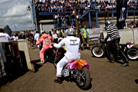 To keep 5000 tattoo sporting spectators of all age groups out of boredom you need more than just madly screaming engines and bikes going sideways at unlikely angles. So they had a fringe program jam packed with attractions such as a kids’ bike race, the Unridable Bike with its out-of-whack front wheel, Wall-of-Death riders and interval sounds out of old TV series on the tannoy. In the evenings djs and bands left no hip un-swivelled. And if we didn’t go home, we’re still out there, dancing in the moonlight.