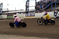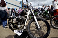 This year an official entry by HD made short work of the contest. Dirt Quake veteran rider Dimitri Coste from France had no trouble in securing the top podium and winning our Panhead-frying-pan-wheel-hub-cover-Aloha trophy. Our Shovelulu Baby Superglide came in more or less last, but nobody cared and fun was had by all, especially the Milwaukee iron brigade.