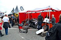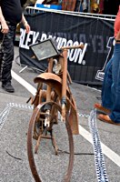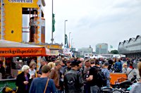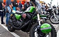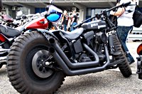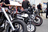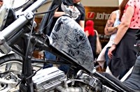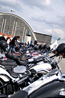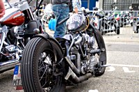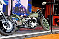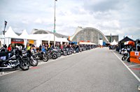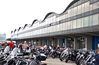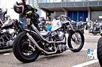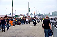 The spacious grounds around the Großmarkthalle are solid with parked Milwaukee steel of all flavours. We take a walk among the thousands of hogs, and enjoy the customizing artists’ efforts to promote custom culture, even when we don’t find many bikes of our favourite vintages.