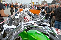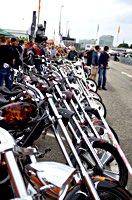 When we take the average chopper rally as a benchmark, this one is definitely different. The numbers say it all: 400.000 spectators lining the streets, there are 8.000 bikes, they have a big, fat, massive parade, 50.000 spectators are crowding in the partyzone. This is one big inchin’ mother of a Harley party, and they know it at the Hamburg Harley Days.