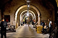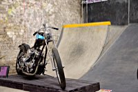 There being a big overlap between the above activities and riding custom Harleys, House of Vans did the right thing, and gave the Assembly Show of custom bikes a temporary home in their awesome subterranean halls for the second time now. There was of course a ton of spraying, styling and skating going on, but the impressive halls, ramps and bowls had no chance against the bikes. They were the heroes for a night.